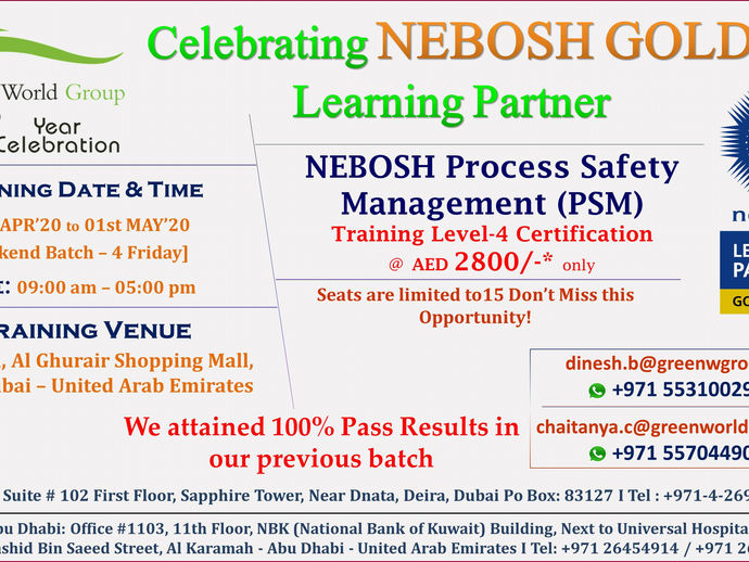 Join the NEBOSH PSM Training at Accredited NEBOSH Gold Learning Partner Institute – Green World Grou